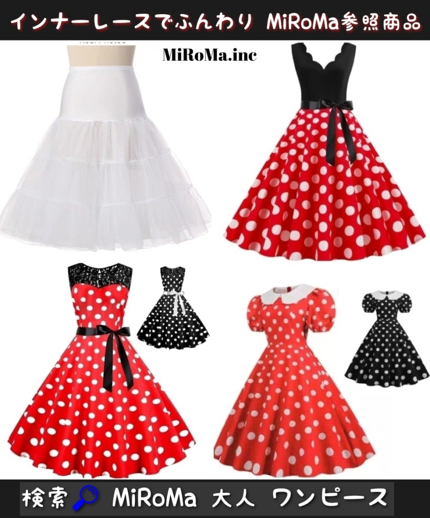 ミニーマウスのトレードマークである赤いドット柄のワンピースは、大人の女性にもぴったりです。シンプルなデザインながら、華やかさがあり、ミニーの愛らしさを引き立てます。さらに、ワンピースは体型をカバーしつつ女性らしいシルエットを演出してくれます。