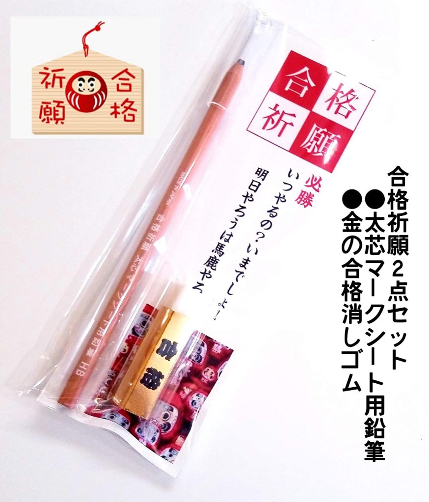 こちらは合格祈願の意味を込めた格言とマークシート鉛筆と金消しゴムのセットです。