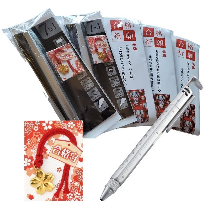こちらは個包装!多機能ボールペンと桜のお守り(励ましの格言付き)です。